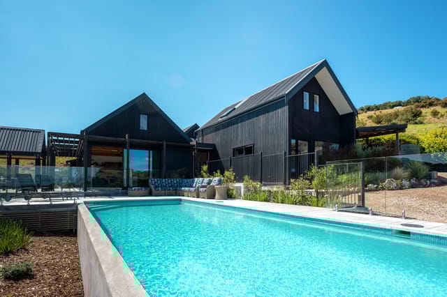 Private spa pool, swimming pool, expansive decks, and beautifully landscaped grounds.